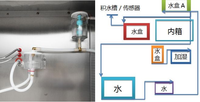 沒錯就是我們的水箱,常規(guī)試驗機用的都是不銹鋼焊接桶,長時間泡水的話會導致焊接點生銹,抽水上來會影響水路堵塞,從而使?jié)穸葋y跳,甚至是沒有濕度等情況。而這個水箱是集研發(fā)團隊聽取客戶意見后專門定制,是經(jīng)過高溫老化,滲水性能,防撞擊等一系列檢測,用個十年五載的不會有太大改變。